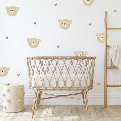 Muursticker teddybeertjes voor neutrale babykamer