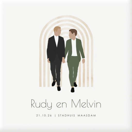 Bruiloft tegeltje met illustratie faceless koppel en regenboog