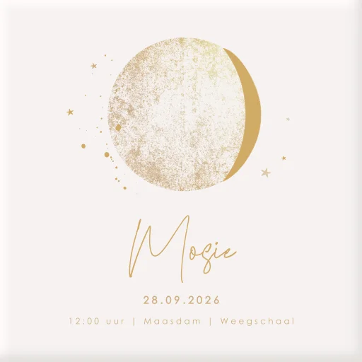 Kies voor dit tegeltje en personaliseer naar wens! Pas de maanfase van je kleintje gemakkelijk aan via de verschillende manen in de beeldbank. Hulp nodig? We helpen graag!