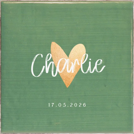 Geboortetegel keramiek in groen met gouden hartje