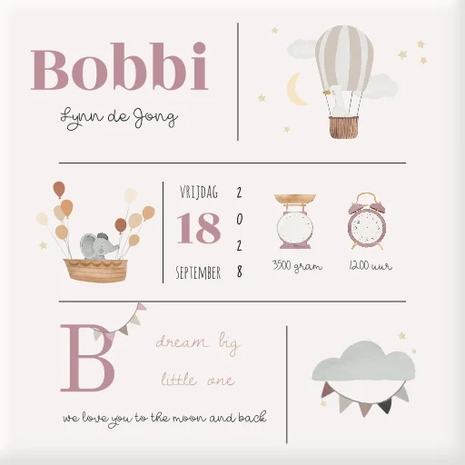 Zo schattig, dit geboortetegeltje met naam van je kleintje! De geboortegegevens maken 'm extra speciaal. Pas het tegeltje aan in de online editor en geef 'm als kraamcadeau aan jezelf of iemand anders. Lief toch?