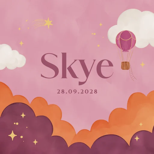 Geboortetegel meisje met roze lucht en luchtballon