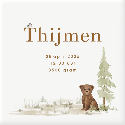 Zo schattig! Dit tegeltje met een beer in het bos. Kies voor dit tegeltje en personaliseer naar wens!