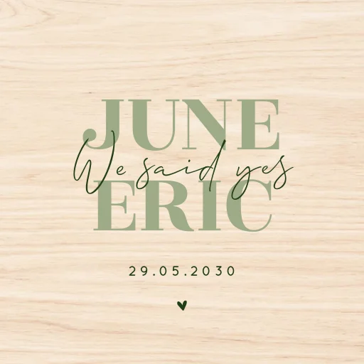 Een stijlvolle houten tegel met groene typografie. Het is een prachtig natuur product en een uniek huwelijkscadeau. Personaliseer het ontwerp eenvoudig in onze online editor.