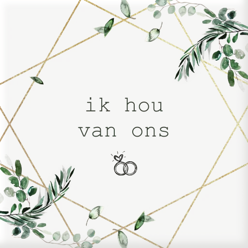 Tegeltje bruiloft met geometrische vormen en eucalyptus takjes