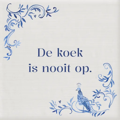Tegeltje Delfts blauw met tekst De koek is nooit op