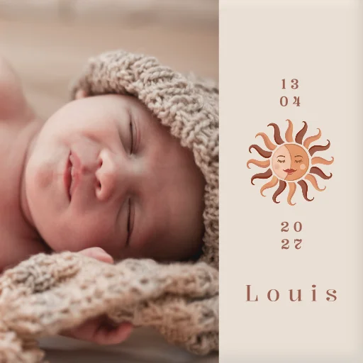 Geboortetegeltje met foto en zon illustratie