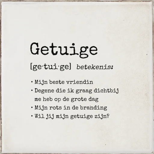 Op zoek naar een originele manier om je getuige te vragen voor de grote dag? Kies voor dit tegeltje met leuke tekst.