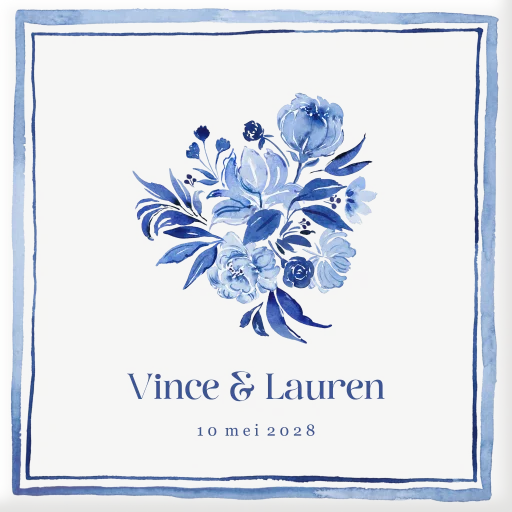 Gepersonaliseerd tegeltje huwelijkscadeau met bloemen Delfts blauw