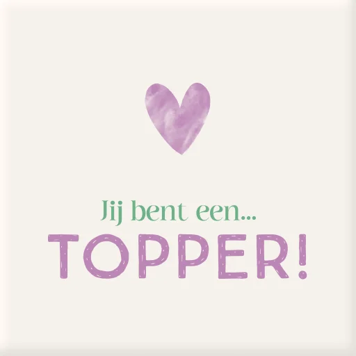 Jij bent een topper! Verras iemand met dit leuke tegeltje. Liever andere kleuren? Dit pas je gemakkelijk zelf aan.