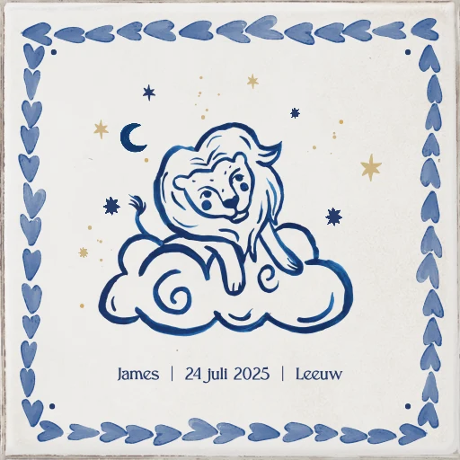 Geboortetegeltje met sterrenbeeld Leeuw en naam
