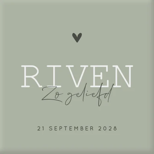 Een mooie herinnering aan de geboorte van jullie kindje, dit mooie olijfgroene tegeltje met donkergroene details. Maak 'm extra persoonlijk door bijvoorbeeld je eigen foto toe te voegen.