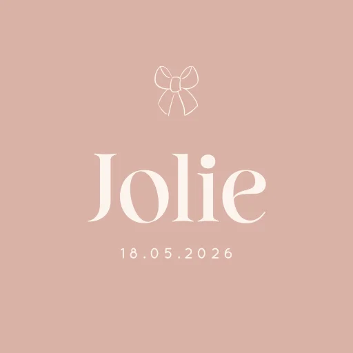Tegeltje in oudroze met klassieke typografie en strikje