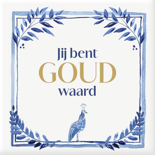 Plaats je eigen spreuk of bericht op dit leuke Delfts Blauwe tegeltje met pauw!