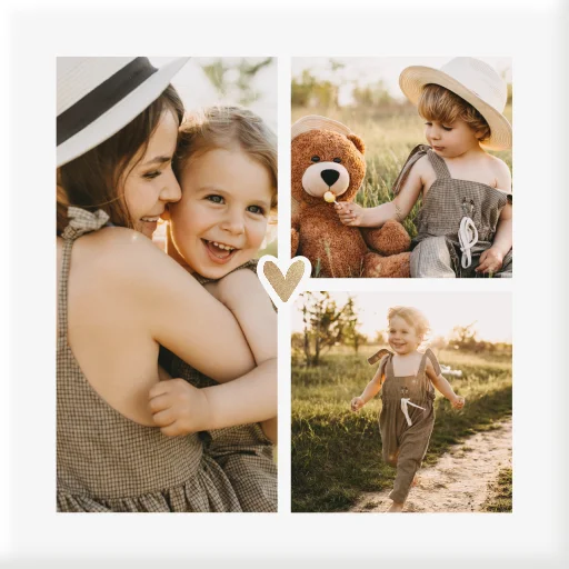 Verras de liefste papa met dit mooie tegeltje voor vaderdag met drie foto's en een gouden hartje.