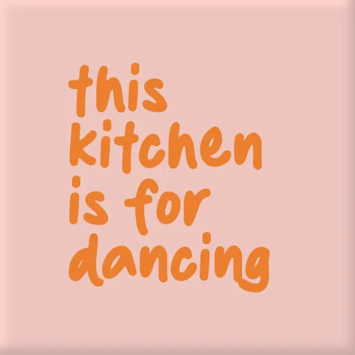 Gekleurde tegeltje met tekst "this kitchen is for dancing"