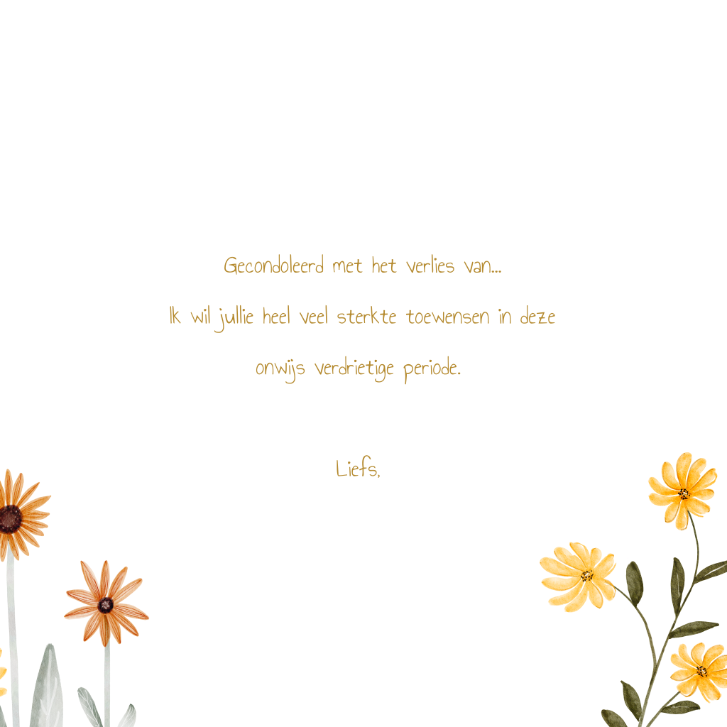Een mooie kaart met gele bloemen om iemand mee te condoleren.