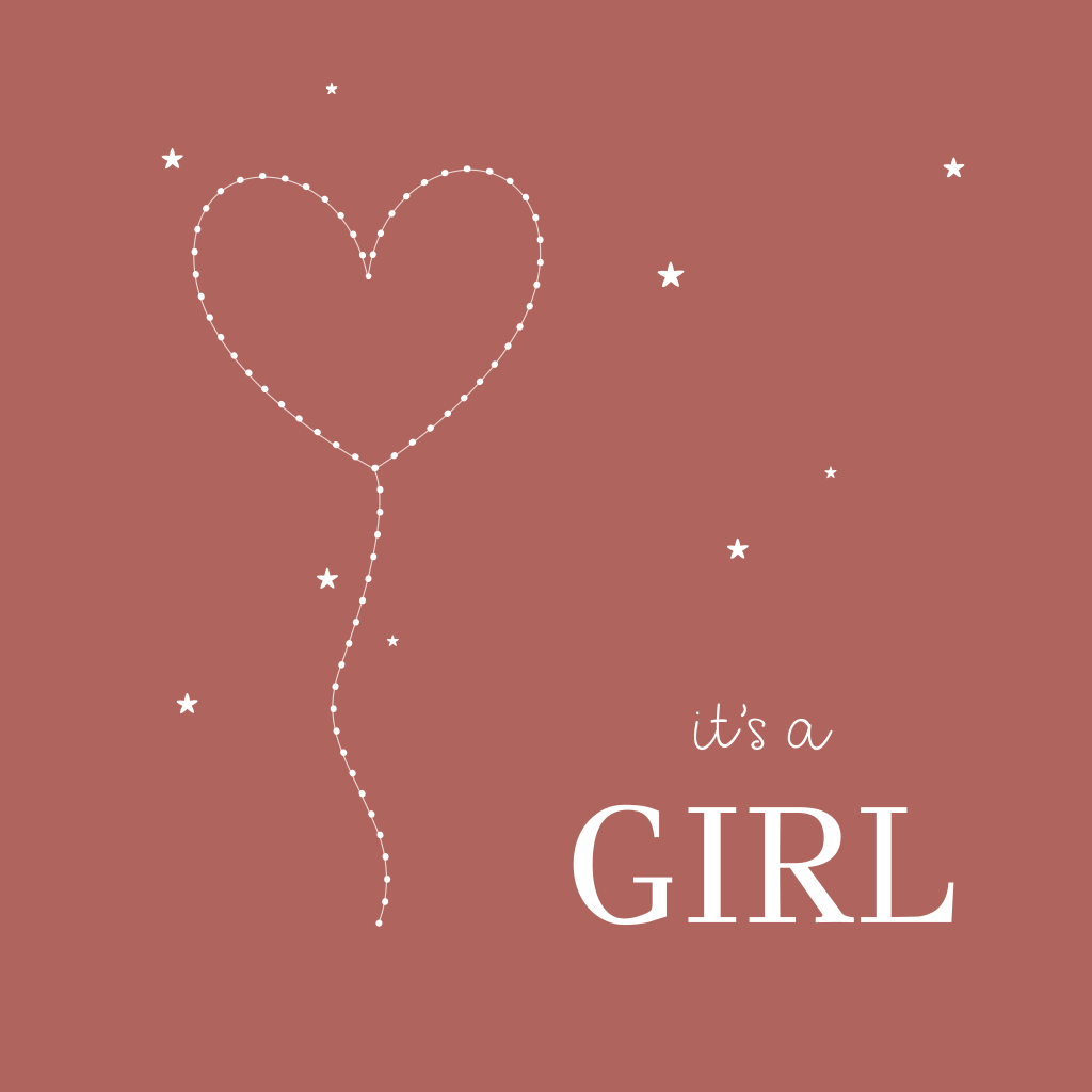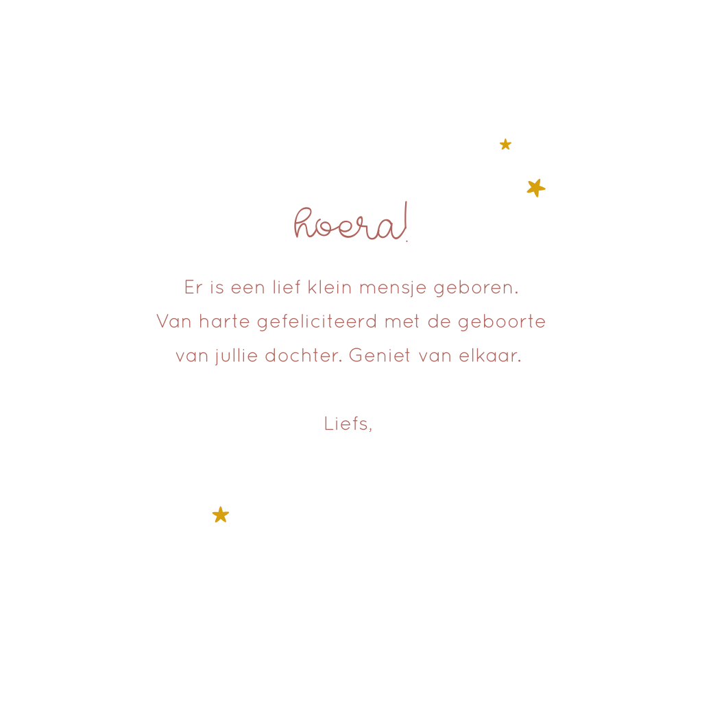 Hippe felicitatiekaart geboorte dochter met roze achtergrond en roséfolie details.