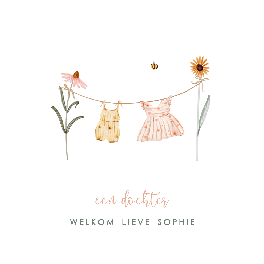 Felicitatiekaartje geboorte dochter met bloemen en babykleding