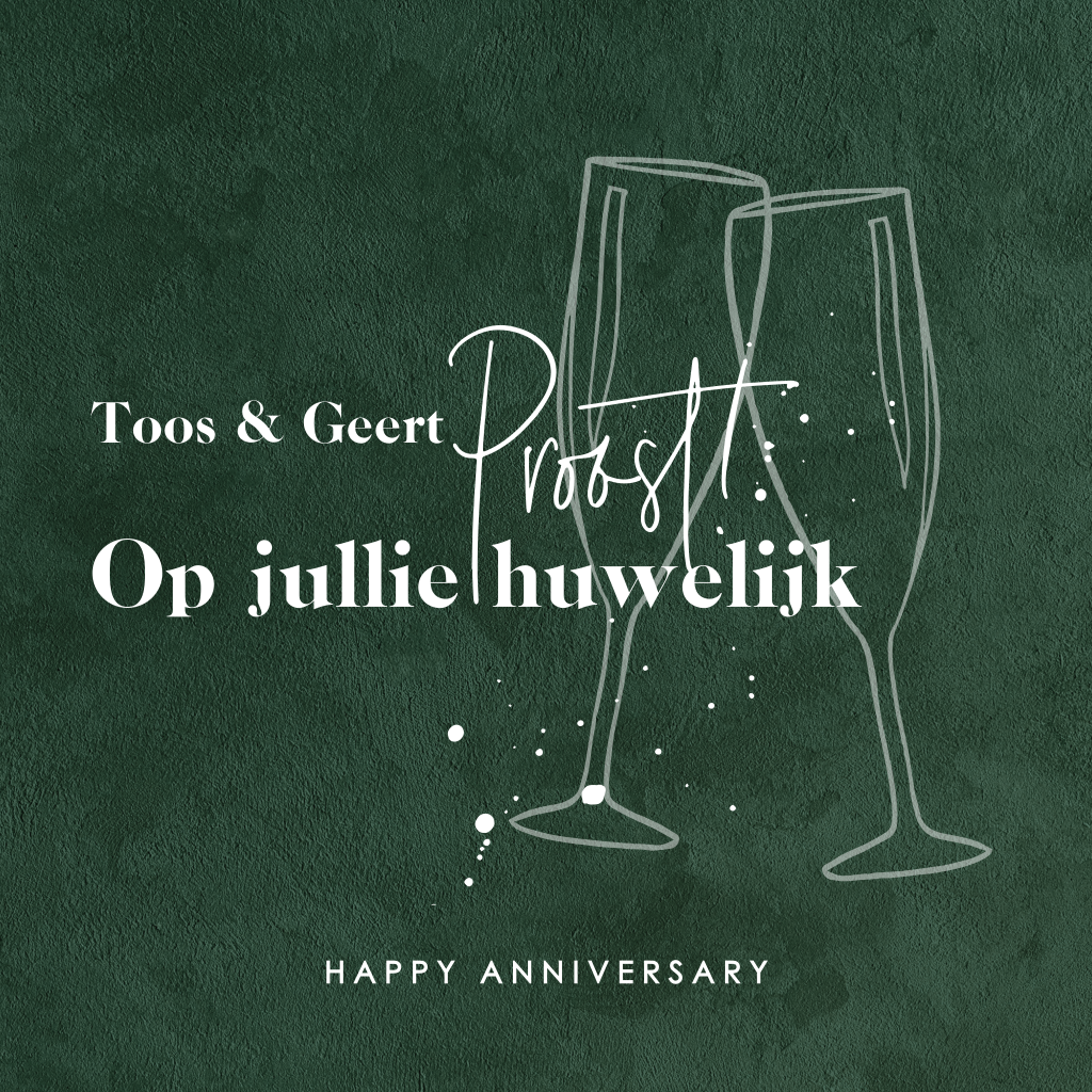 Wenskaart huwelijksjubileum met champagneglaasjes