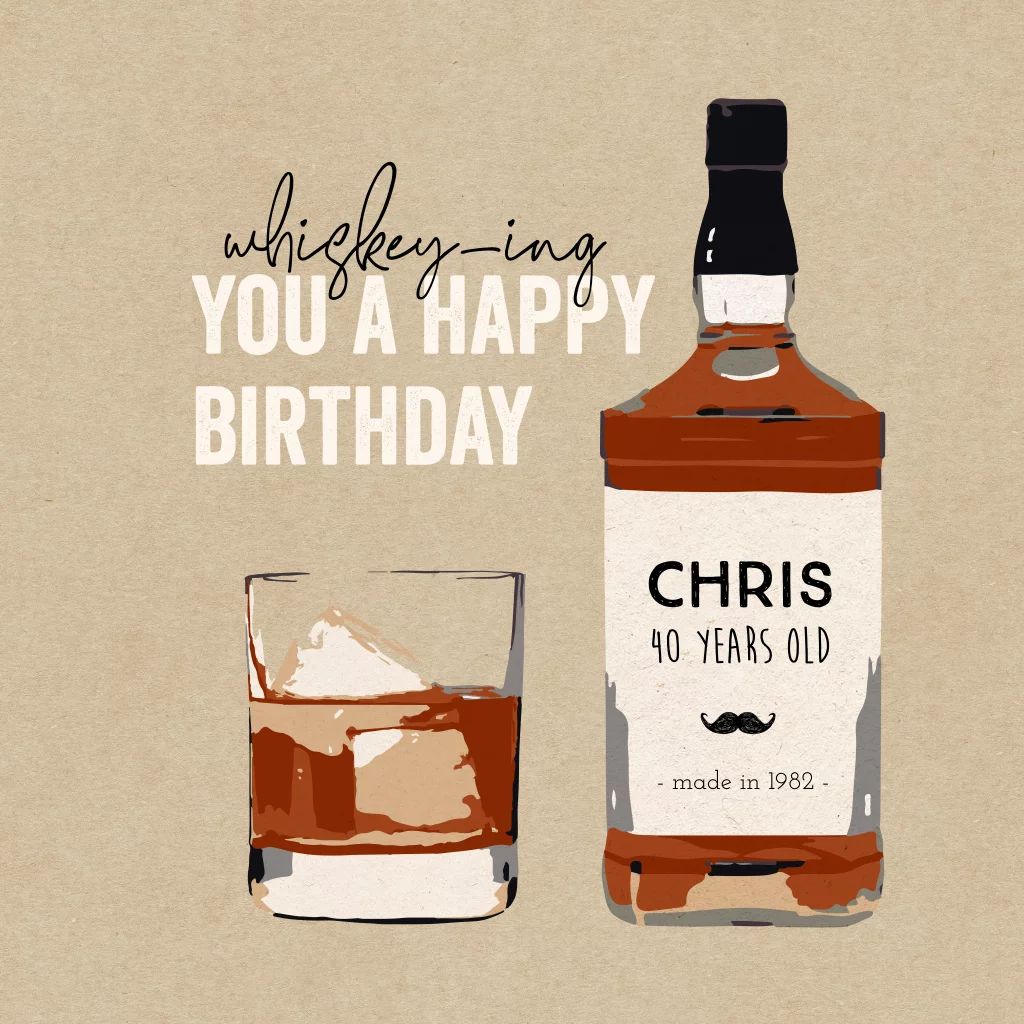 Is de jarige job gek op whiskey? Verras hem dan met deze toffe wenskaart en maak het label op de fles helemaal persoonlijk.