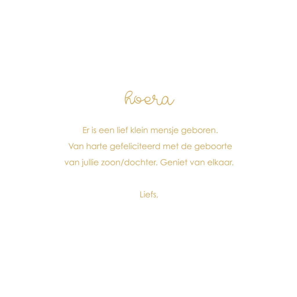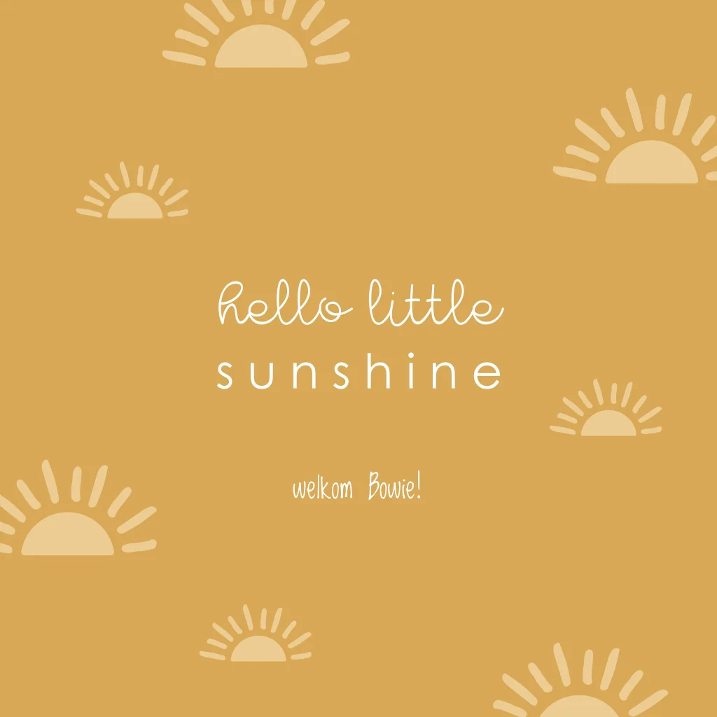 Een hip kaartje om de kersverse ouder te feliciteren met de geboorte van hun kindje. De zonnetjes zorgen voor een vrolijke uitstraling. Leuk voor zowel een jongetje als een meisje!