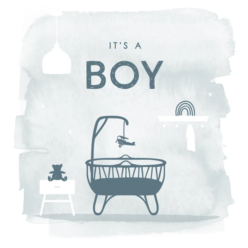 Felicitatiekaart geboorte zoon met babykamertje en watercolour