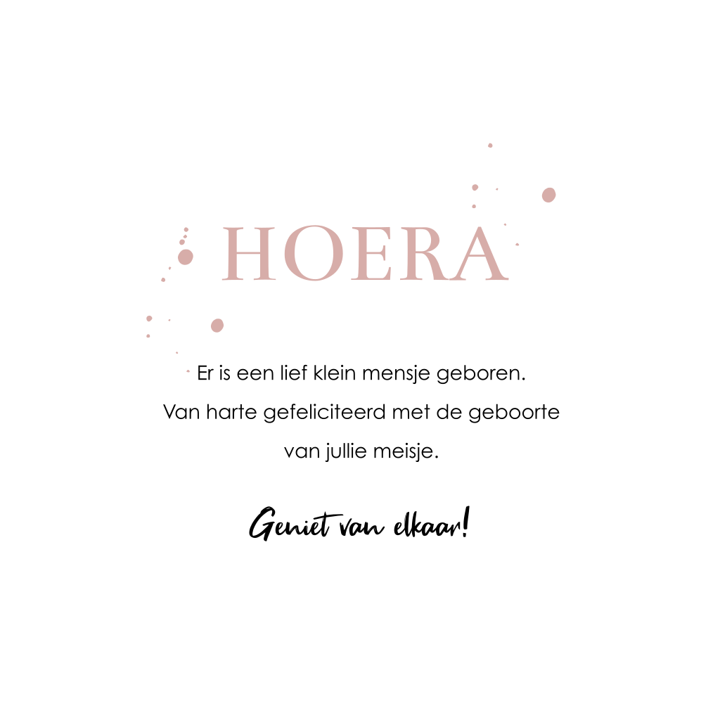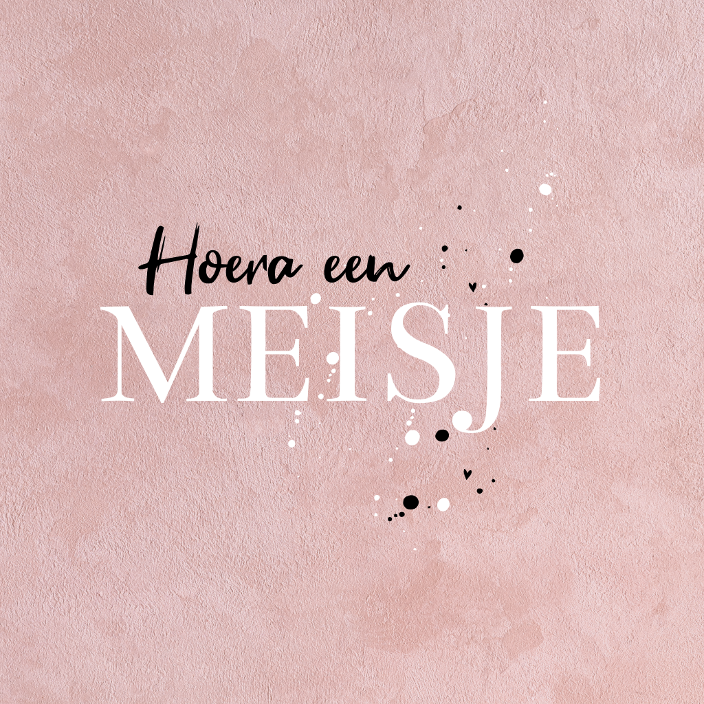 Typografische wenskaart geboorte meisje met een roze velvet-look achtergrond.
