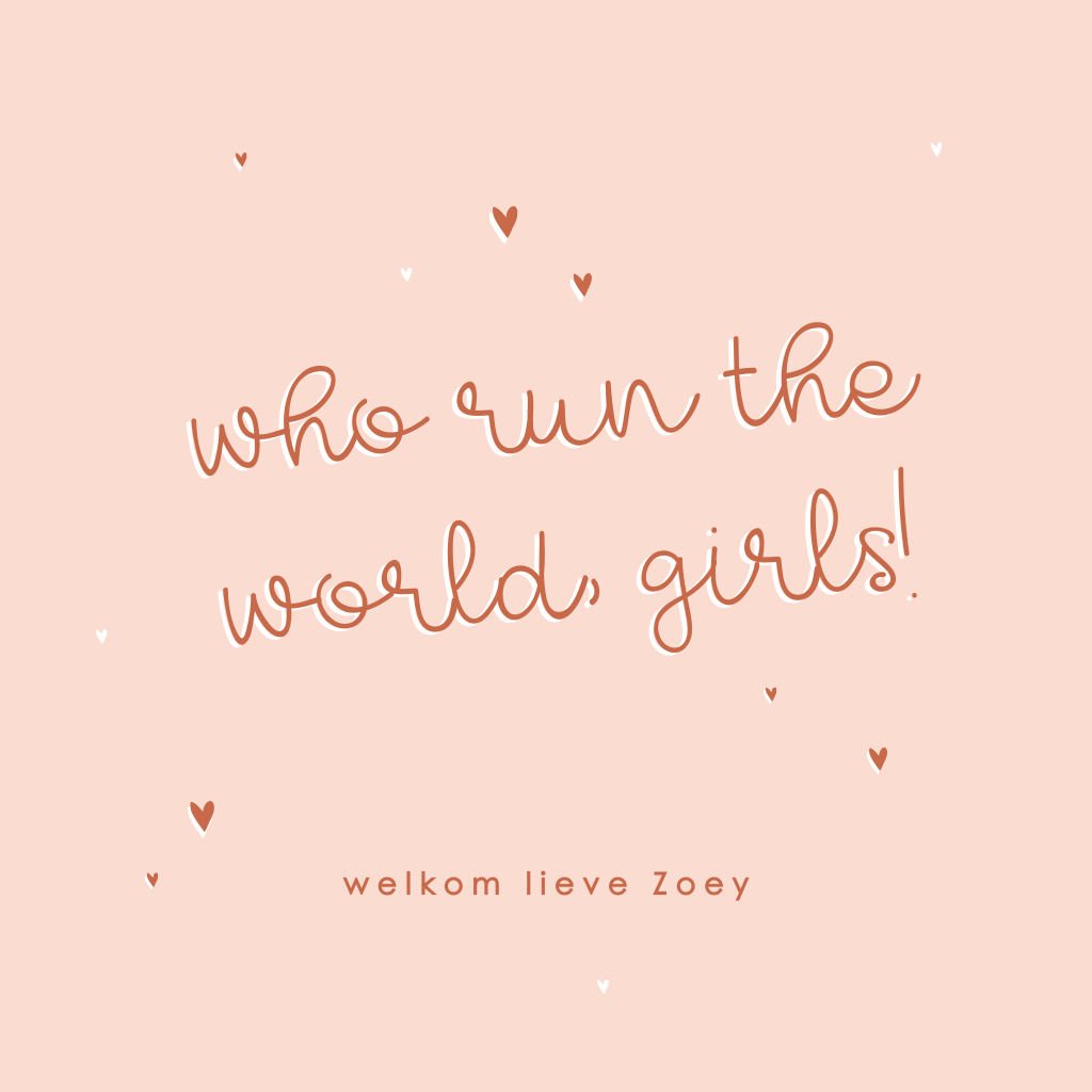 Felicitatiekaart geboorte dochter met tekst 'who run the world, girls'