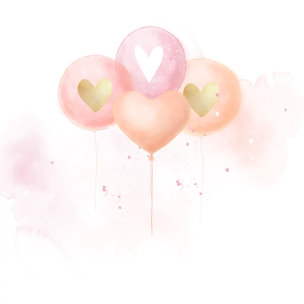 Whoo, it's a girl! Stuur deze lieve kaart met ballonnen en elementen in roségoudfolie naar de kersverse papa en mama om ze te feliciteren met hun dochter.