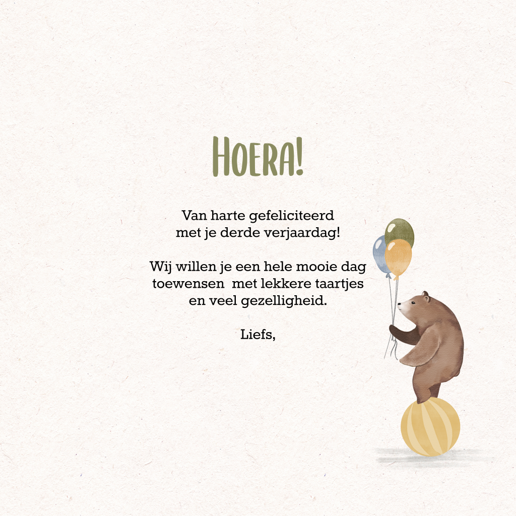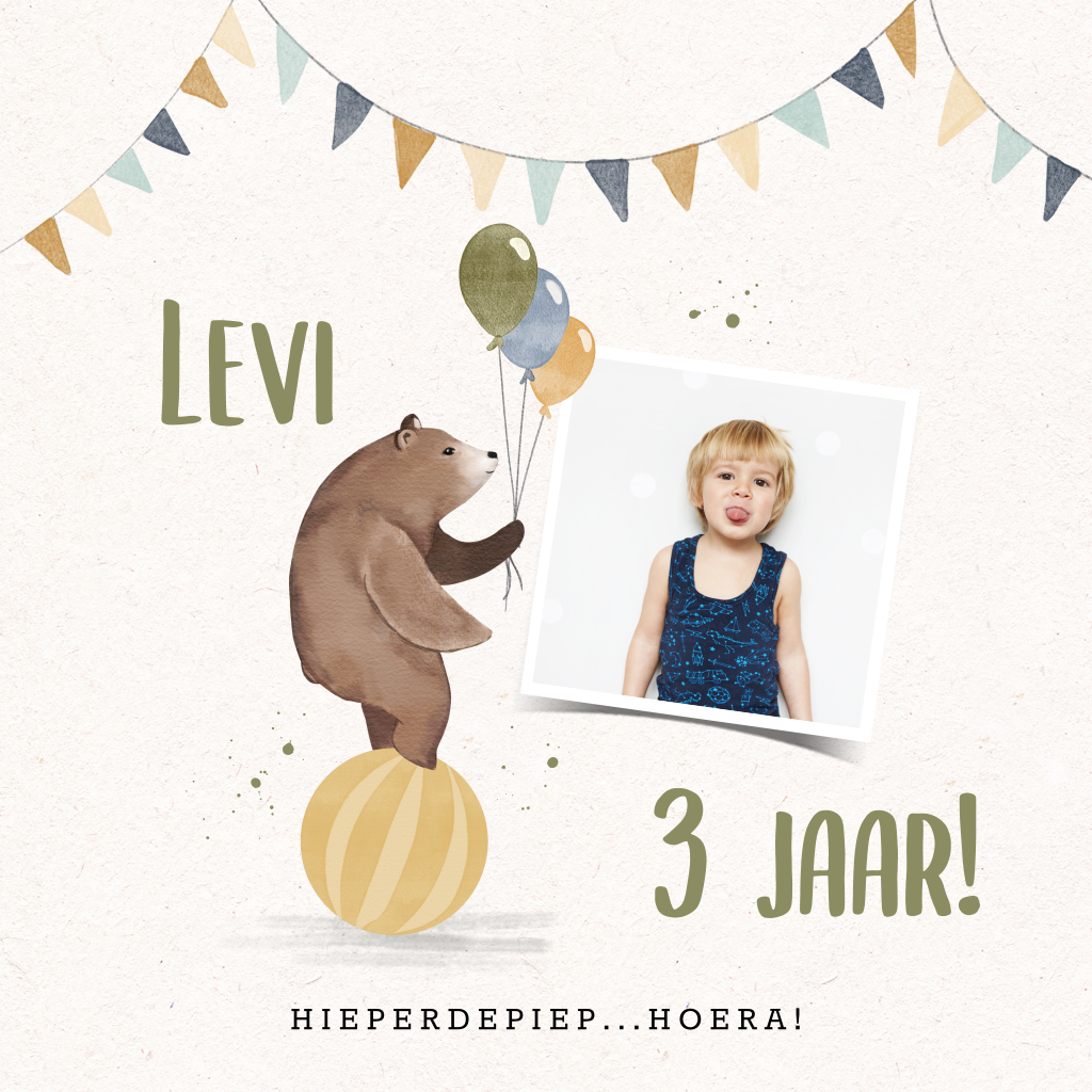Feliciteer de kleine man met een kaartje per post! Deze kaart in circusthema is altijd een goed idee. Personaliseer 'm met een foto, de naam en de leeftijd van de jarige Job, dat gaat hij super leuk vinden!
