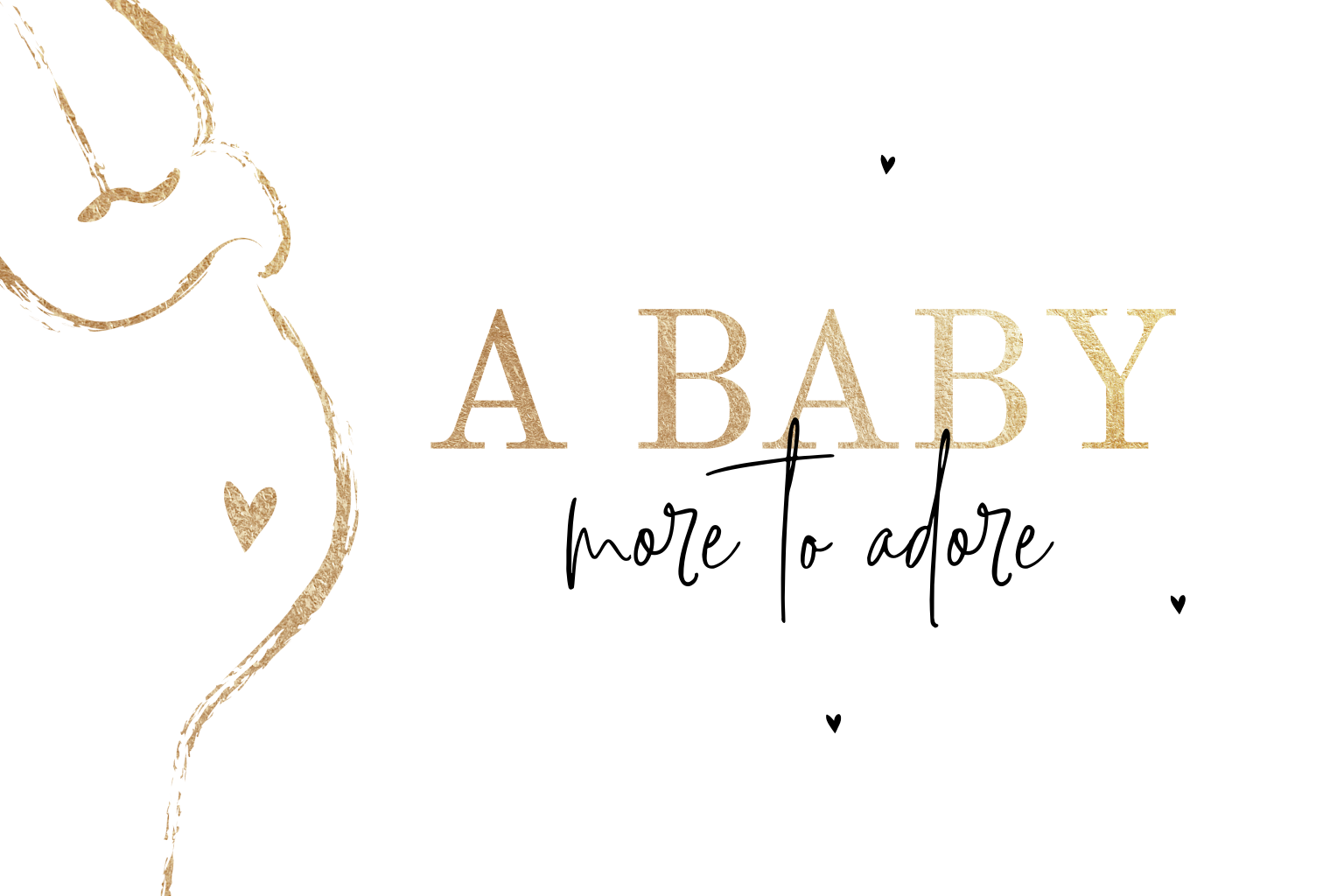 Weer een kindje op komst? Stuur de papa en mama een kaartje om ze te feliciteren. Met mooie illustratie van babybuik in goudlook.