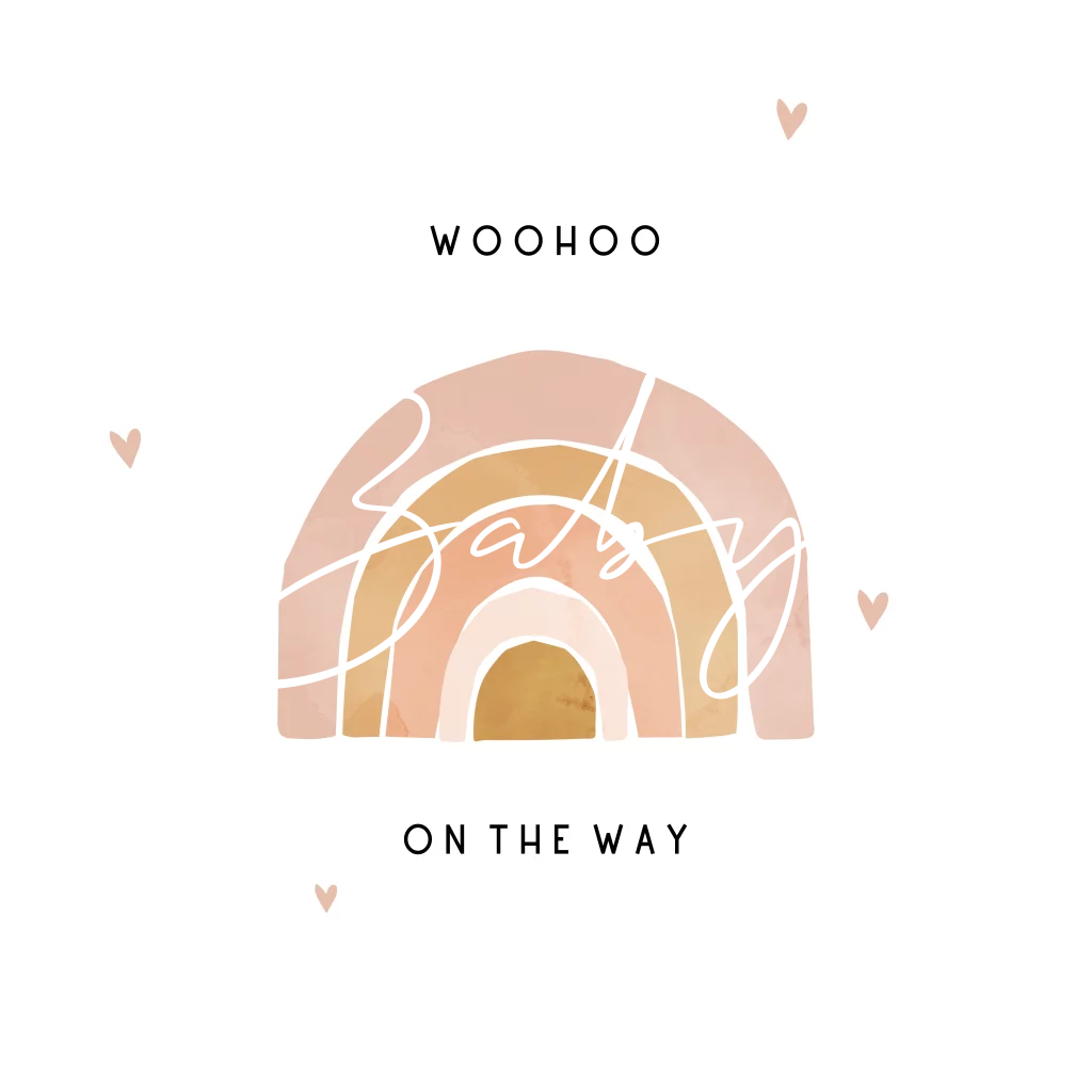 Woohoo, baby on the way! Zó leuk! Feliciteer de toekomstige papa en mama met deze lieve wenskaart.