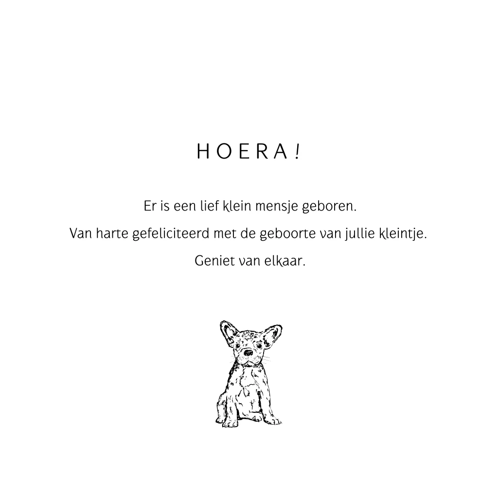Een origineel en lief kaartje met hondje, om de ouders te feliciteren met de geboorte van hun kindje.