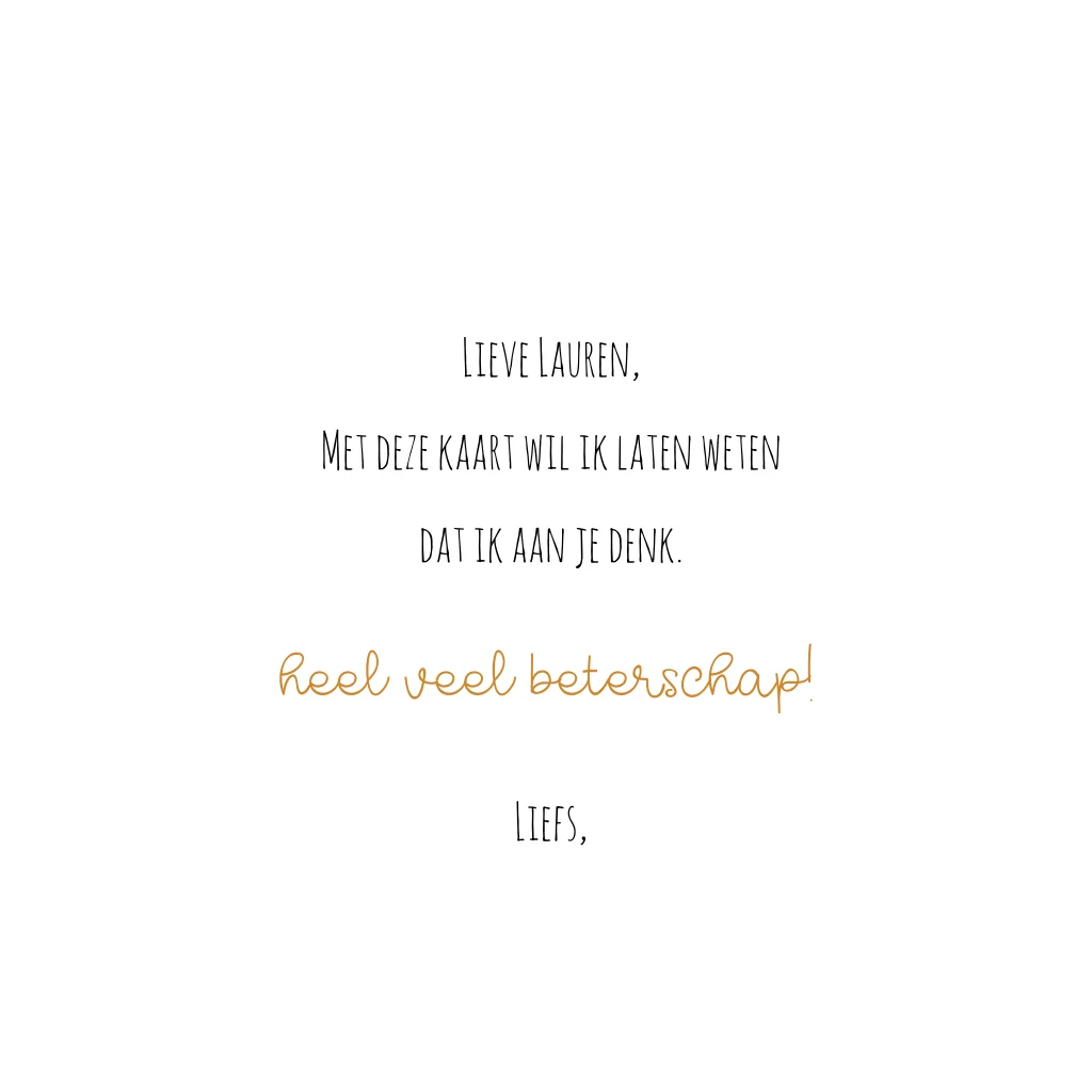 Beterschap kaart met vrolijke bloemen, fruit en goudfolie