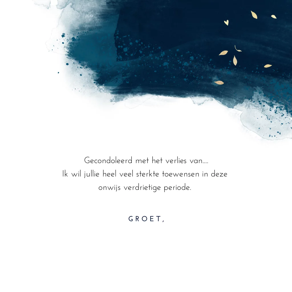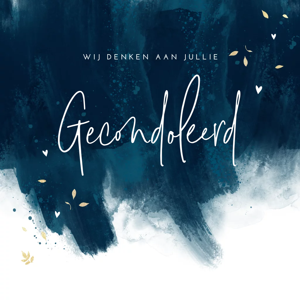 Condoleancekaart met goudfolie en blauwe verfstrepen