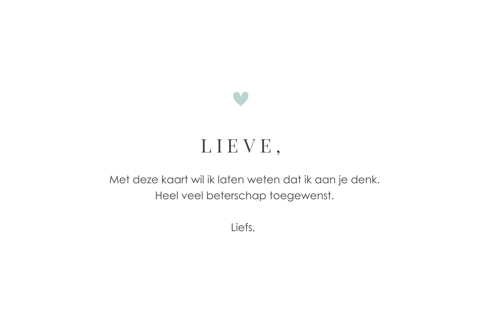 Typografische wenskaart beterschap met spetters en goudfolie.
