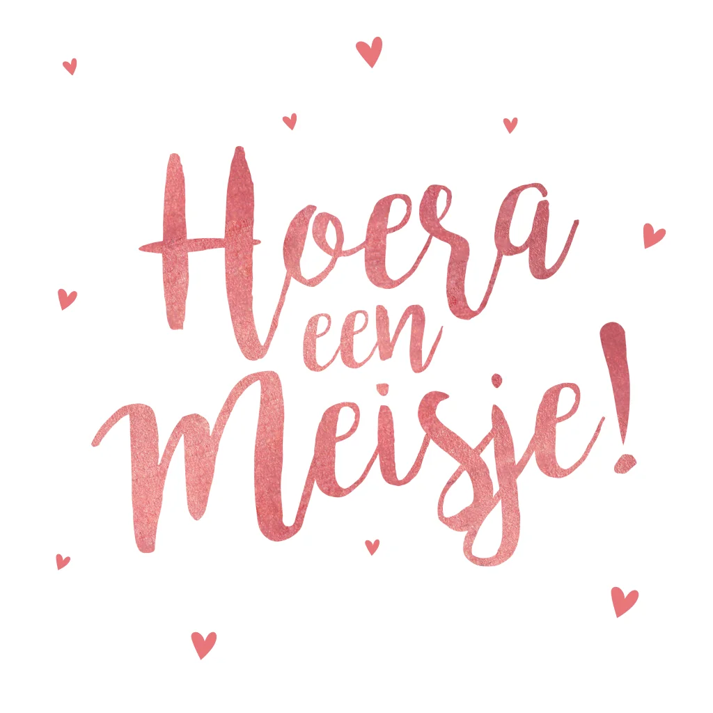 Prachtig felicitatiekaartje met hartjes in het roze om te versturen wanneer er een meisje is geboren.