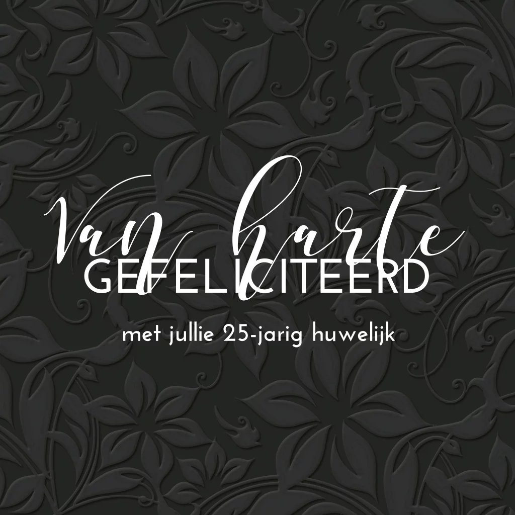 Stijlvolle kaart felicitatie huwelijk met bloemen achtergrond waarbij zwart en goud kleur zijn gecombineerd.
