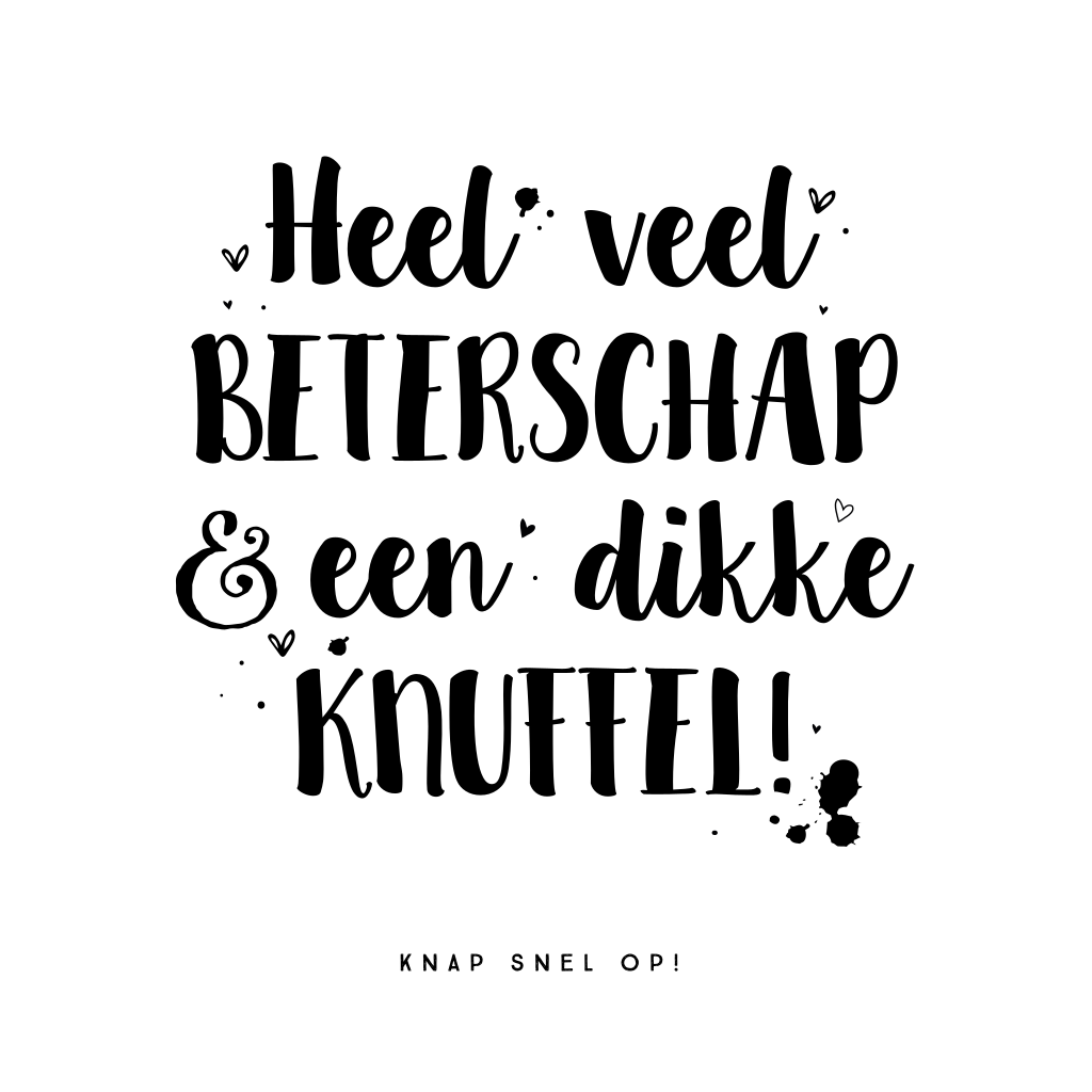 Wens je vriend, vriendin, vader, moeder of kennis veel beterschap met deze lieve kaart. De sierlijke letters maken hem helemaal af.