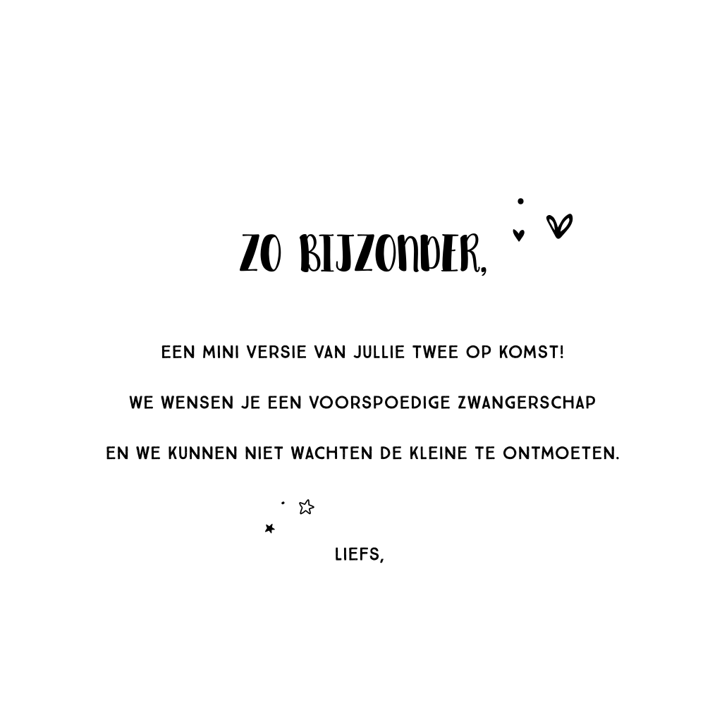 Een kleintje op komst! Een vrolijke felicitatiekaart met handlettering, hartjes, sterretjes en verfspetters.