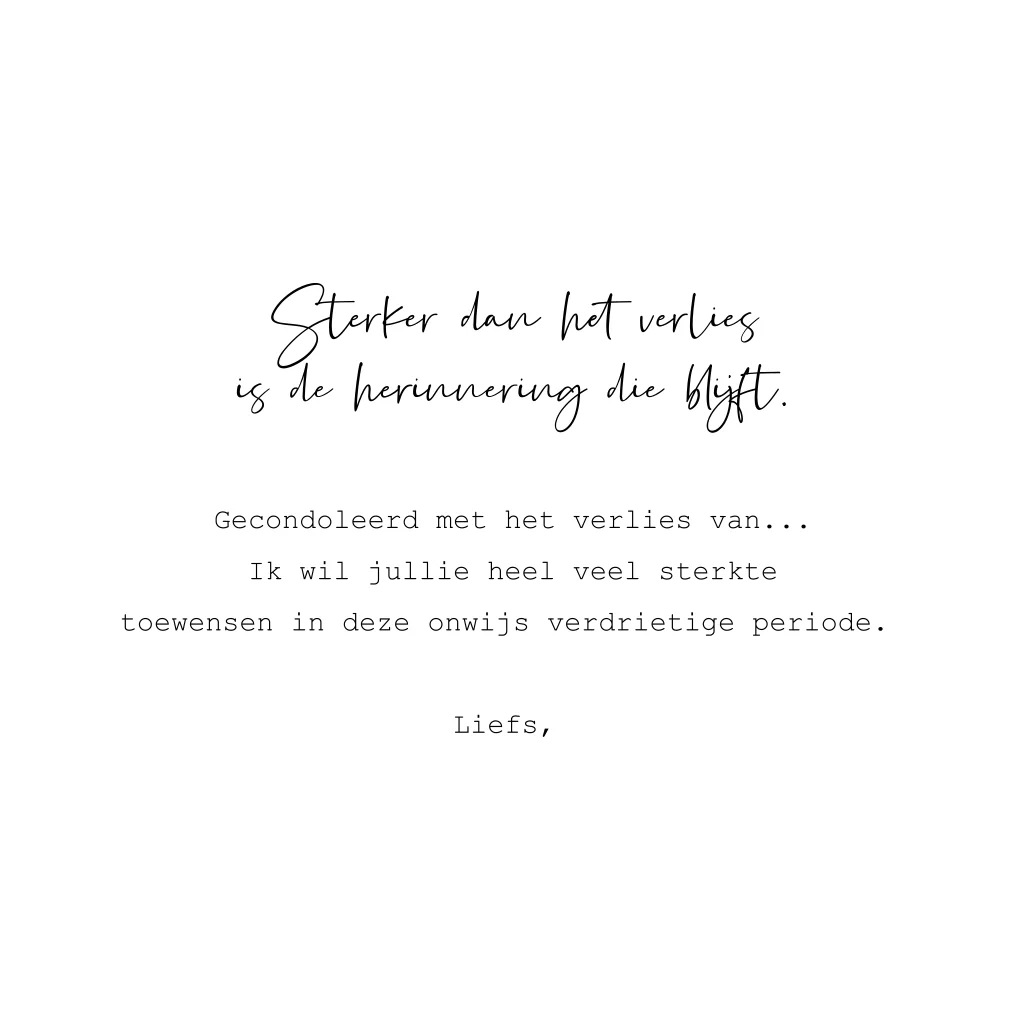 Een mooie kaart om iemand mee te condoleren. Er is een foto van het strand te zien met daaronder een tekst die wordt gedrukt in echt goudfolie.