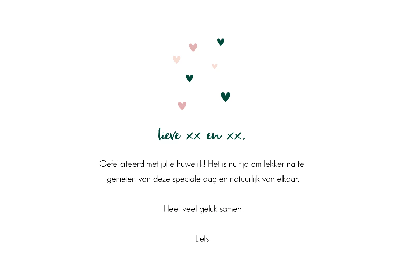 Felicitatiekaartje trouwen met hartjes en goudfolie