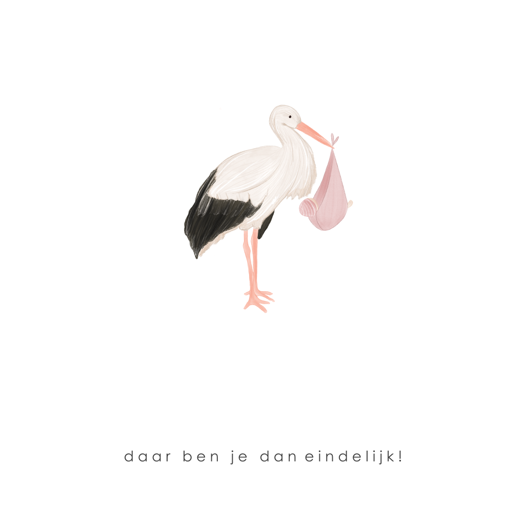 Lieve wenskaart geboorte meisje met ooievaar