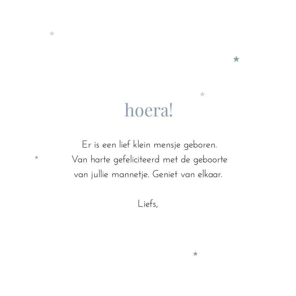 Lieve wenskaart met wiegje om kersverse ouders te feliciteren met de geboorte van hun zoontje.