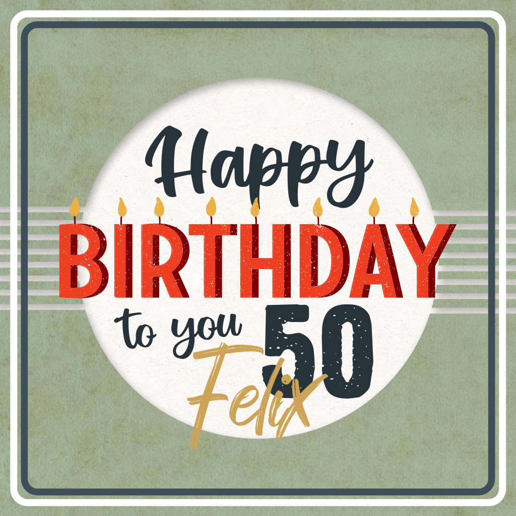Stoere felicitatiekaart voor een man in retrostijl. Maak 'm zelf af met de naam en leeftijd van de jarige Job!