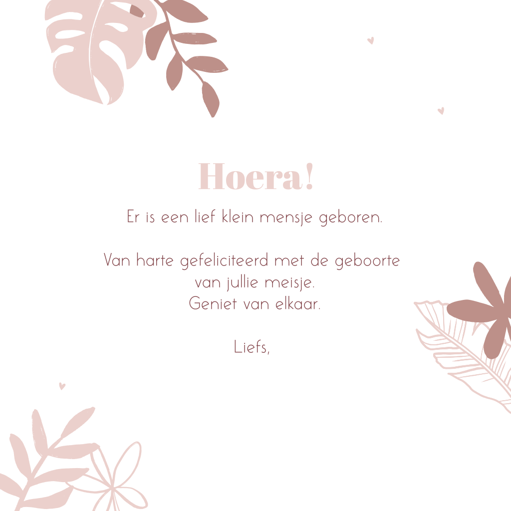 Iemand in je omgeving heeft een dochtertje gekregen. Feliciteer de kersverse ouders met een luxe kaartje. De naam van het meisje wordt gedrukt in echt roséfolie.