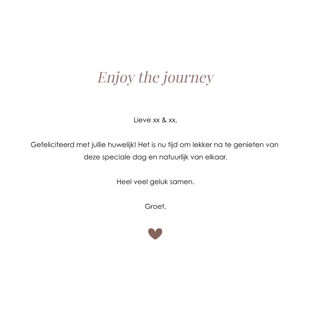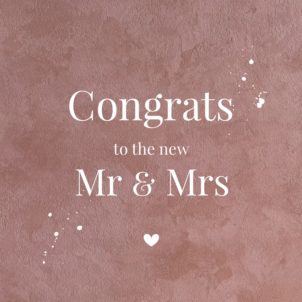 Stijlvolle kaart om een bruidspaar te feliciteren met hun huwelijk in een oudroze trendkleur. Dit prachtige kaartje kun je oppakken een aanpassen in de editor. De tekst op de voorzijde wordt gedrukt in roségoudfolie. Dat maakt het kaartje extra bijzonder!