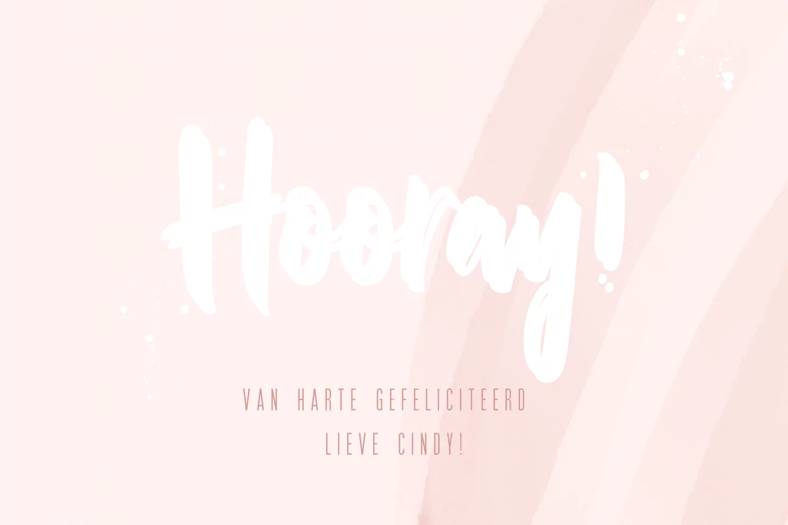Een trendy kaartje om iemand in je omgeving te feliciteren met haar verjaardag. De achtergrond heeft verschillende roze tinten. 'Hooray!' wordt gedrukt in echt roséfolie. Dit zorgt voor een luxe afwerking.