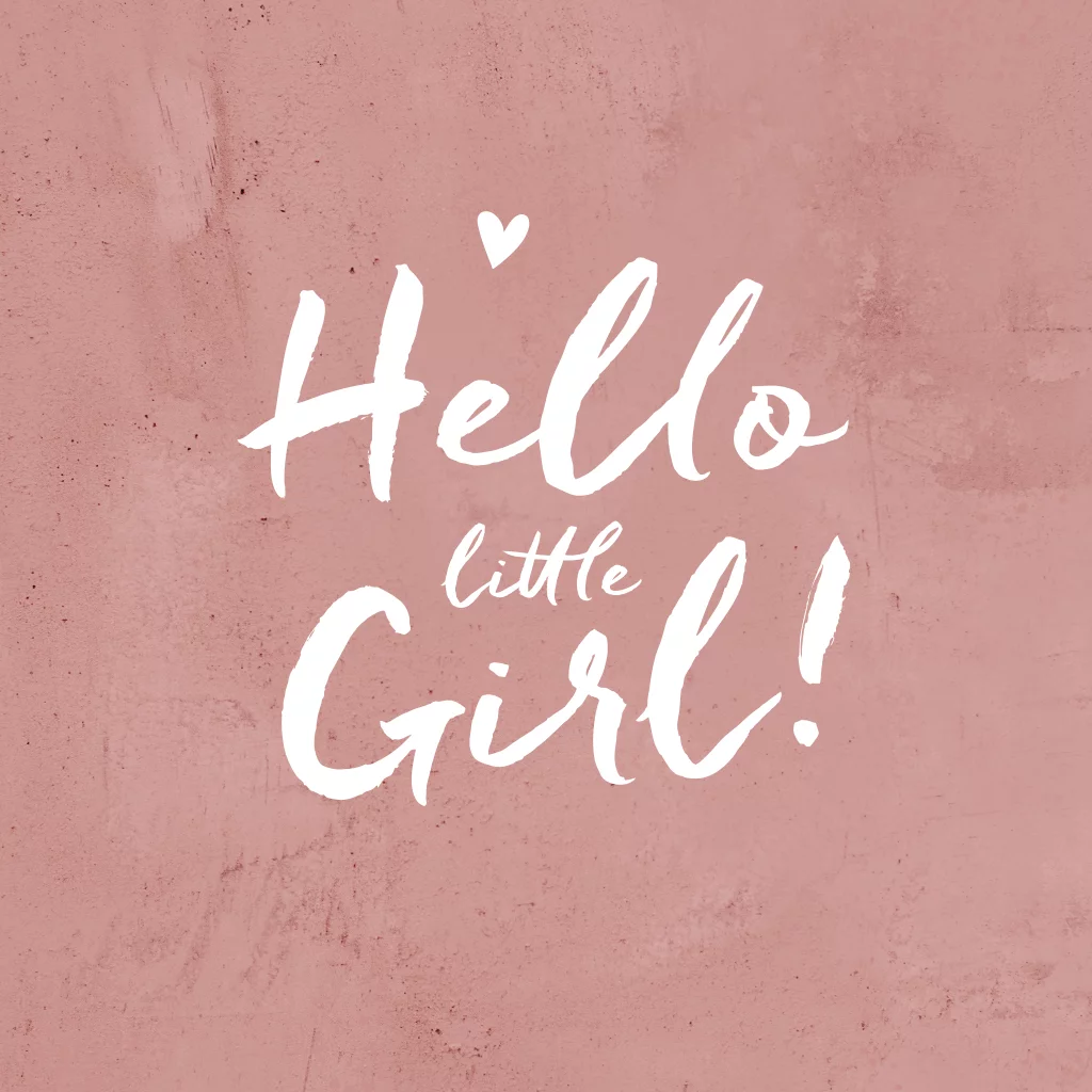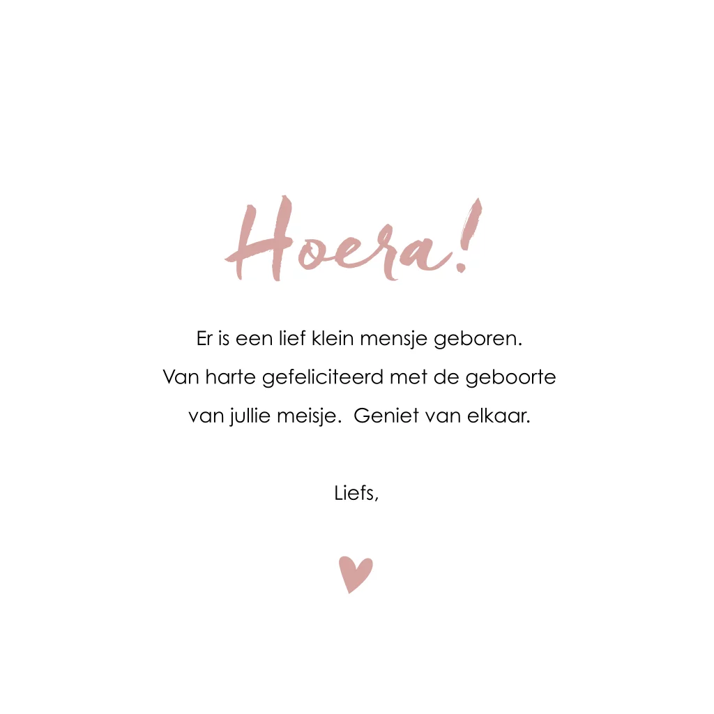 Een echt meisjeskaartje met roze, mooie typografie, hartje en lieve tekst.